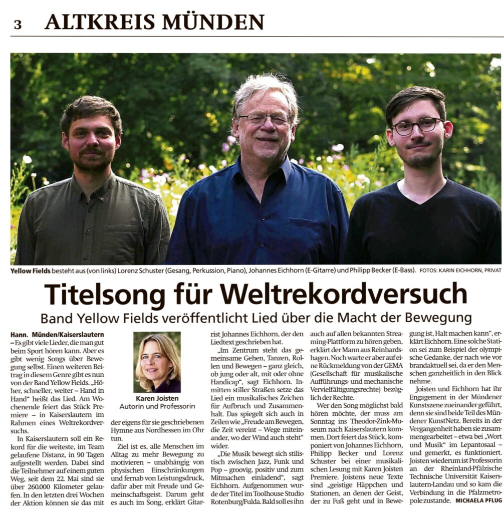 Bewegung verbindet: Das Yellow Fields – Trio veröffentlicht den Titelsong zum Weltrekordversuch in Kaiserslautern