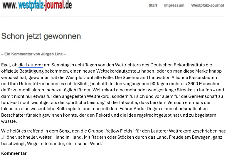 Entstanden ist das Stück anlässlich des groß angelegten Weltrekordversuchs in Kaiserslautern zur Förderung von Bewegung im Alltag, wo es am 27. Juli 2025 im Theodor-Zink-Museum erstmals live präsentiert wurde.